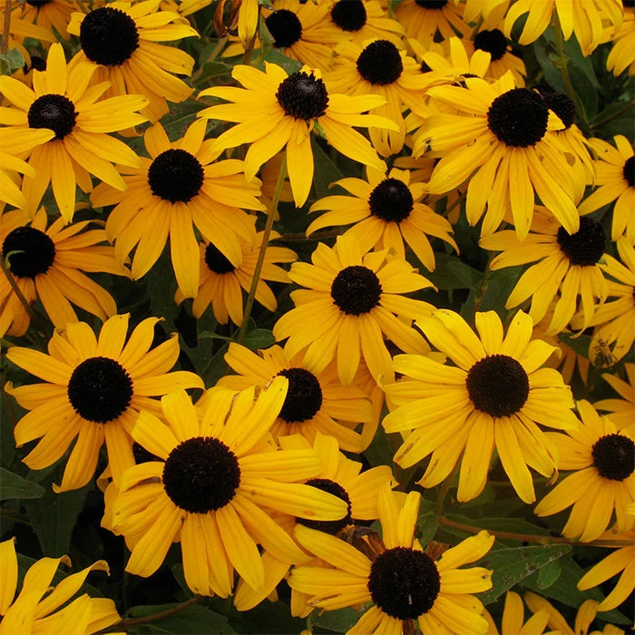 A U.S. native perennial that has become a garden favorite. Bushy plants produce masses of 3 to 4 inch, golden, daisy-like flowers with dark brown domed seedheads. They bloom from midsummer to fall, but full sun will produce the earliest bloom. Once established, they are virtually maintenance free and will bear loads of blooms for both garden beauty and indoor bouquets.