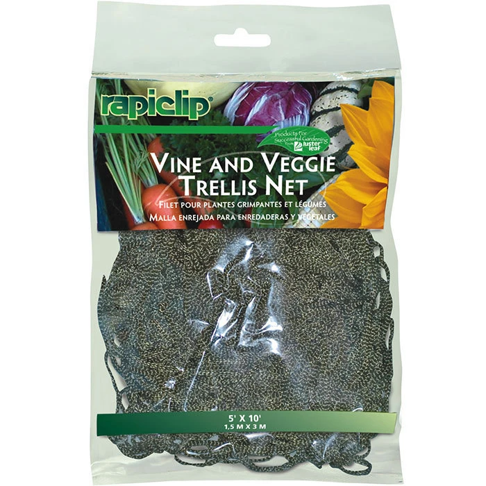 5 foot x 10 foot trellis netting allows for faster ripening and easier harvesting. Made of 100% nylon, this 7 inch “reach-thru” mesh is very strong and virtually “tangleproof”. Saves garden space. Guaranteed for 5 years.